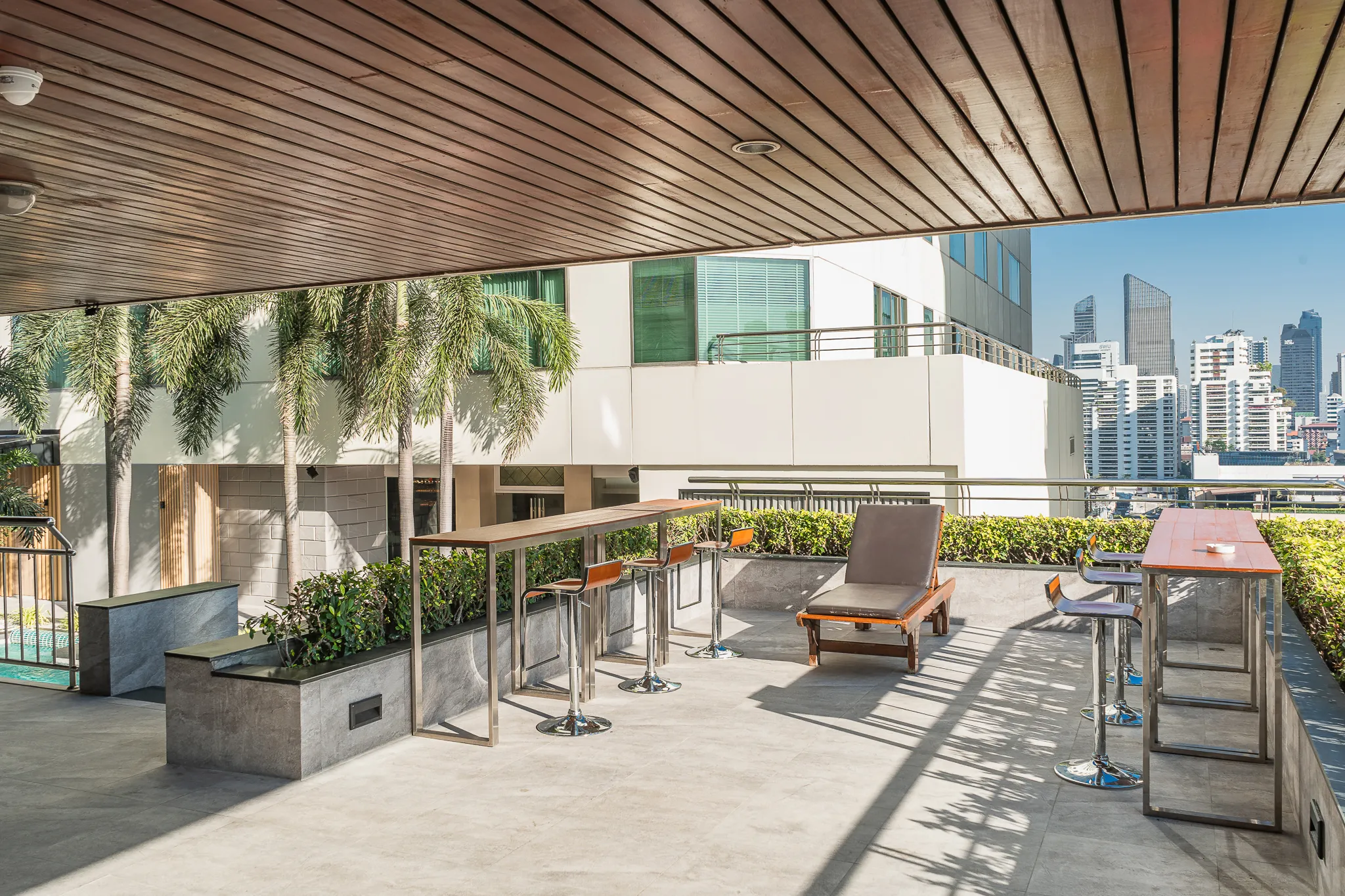 Visualize your stay at our 5-star gallery hotel on Sukhumvit Road with direct BTS Phra Khanong access. Discover spacious rooms and suites with kitchens, alongside standout facilities including an outdoor pool, heated pool, and gym; all overlooking the vibrant charm of the Phra Khanong district.