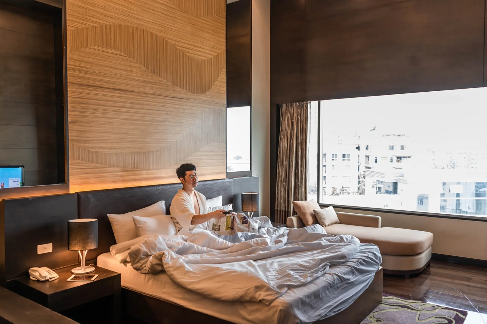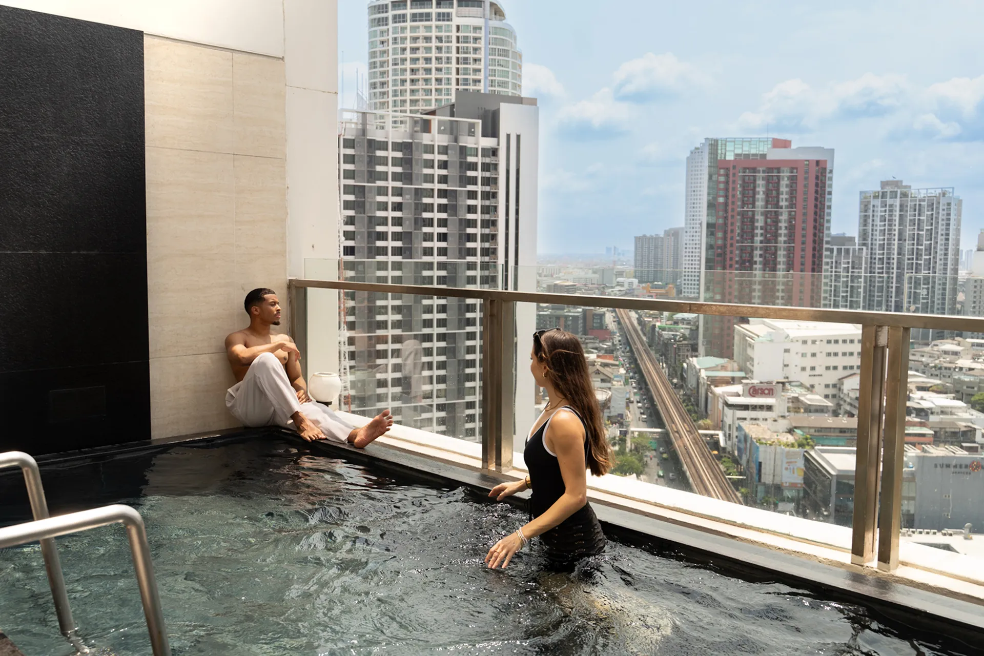 Visualize your stay at our 5-star gallery hotel on Sukhumvit Road with direct BTS Phra Khanong access. Discover spacious rooms and suites with kitchens, alongside standout facilities including an outdoor pool, heated pool, and gym; all overlooking the vibrant charm of the Phra Khanong district.